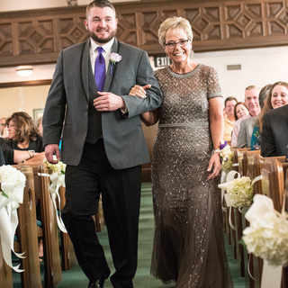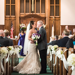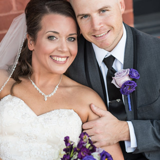 Kyle and Amanda were married in a beautiful traditional wedding at St John's UCC. The elegant shades of purple in her Lawrence Florist bouquet were a perfect compliment to her ivory Simply Elegant Bridal gown. Not to be forgotten, a hidden homage to Superman added a quirky and fun twist to her garter. Kyle and groomsmen looked dapper in their Savvi Formalwear, and the entire crew celebrated after the ceremony at the New Town St Charles reception.. Their stunning photos truly shine with their love for each other.